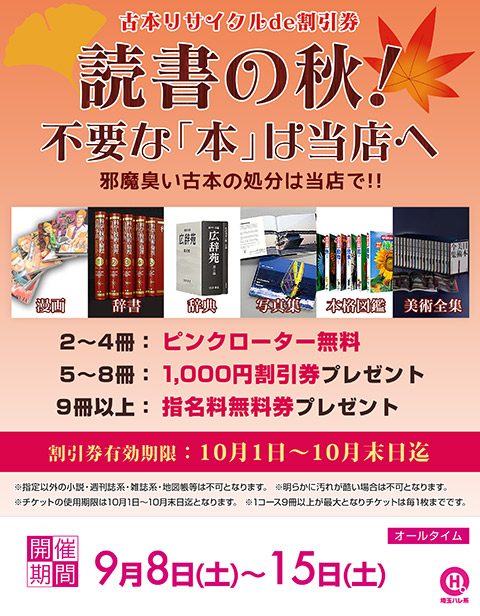 ※指定以外の小説・週刊誌系・雑誌系・地図帳等は不可となります。