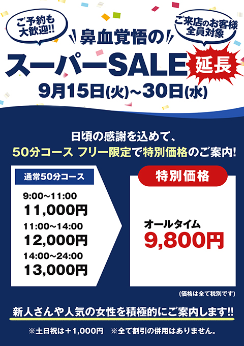 日頃の感謝を込めて、50分コース フリー限定で特別価格のご案内!