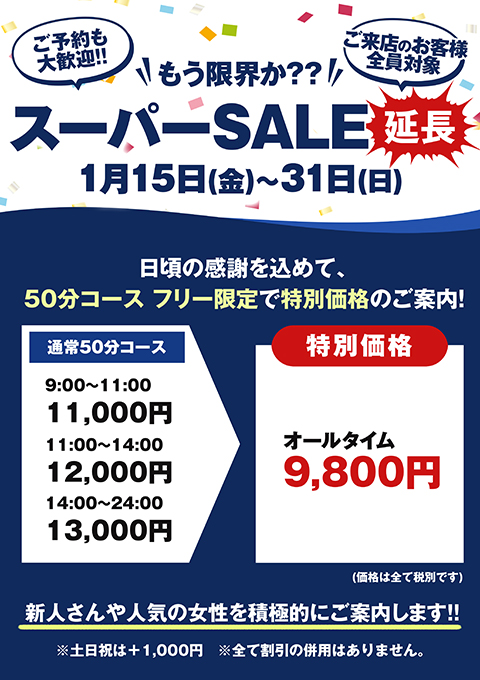 日頃の感謝を込めて、50分コース フリー限定で特別価格のご案内!