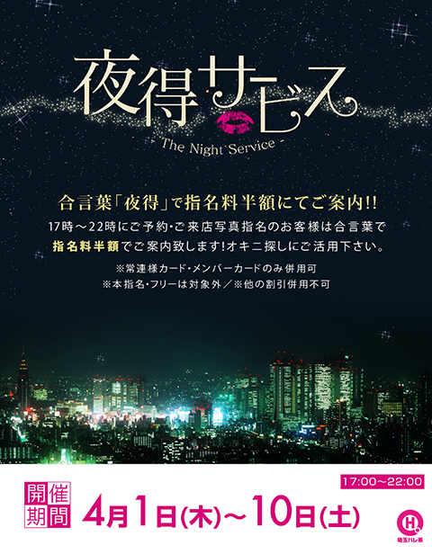 17時〜22時にご予約・ご来店写真指名のお客様は合言葉で