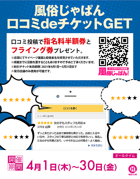 口コミ投稿で指名料半額券とフライング券プレゼント。