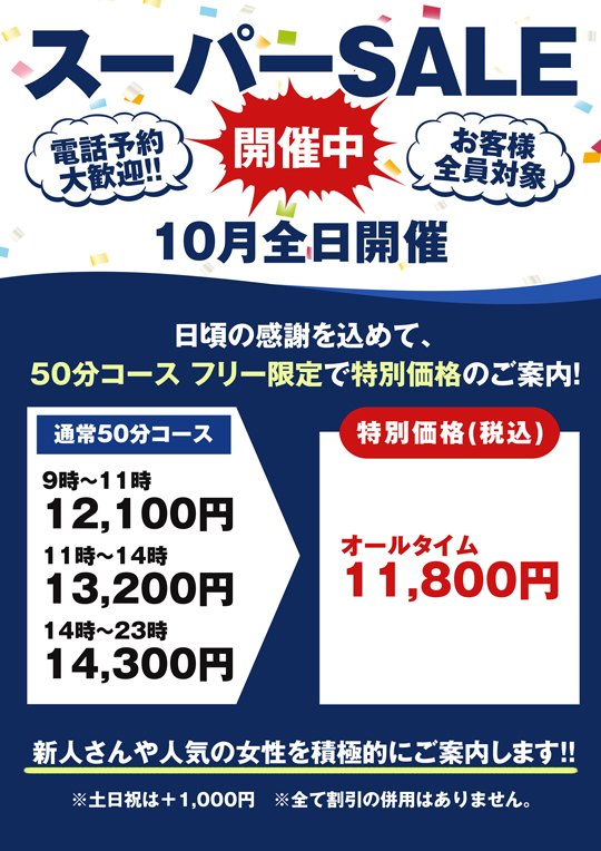 日頃の感謝を込めて、50分コース フリー限定で特別価格のご案内!