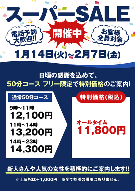 日頃の感謝を込めて、50分コース フリー限定で特別価格のご案内!