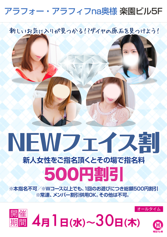 新人女性をご指名頂くとその場で指名料500円割引